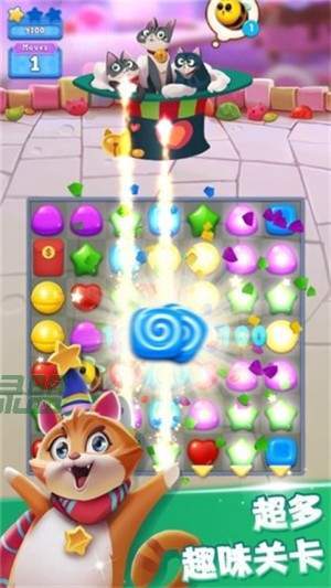 可爱的猫咪将带您进入甜蜜的糖果消除乐园。