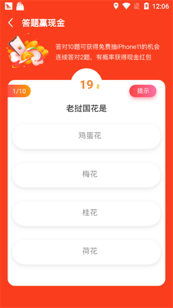 每天都有着不同场次的答题,答对10题就可以抽取手机大奖;
