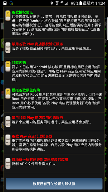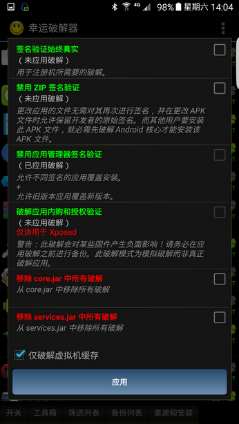 c、比如破解应用内购和授权验证,勾选并应用。