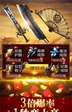 传奇霸业红包版是一款真实的可以领红包的传奇游戏,这款传奇霸业红包版的爆率非常的高!区区都可以轻松爆红包哦!所有的装备都是可以回收红包的!而且装备还可以永久保值,各种福利也是非常的丰厚,喜欢玩传奇的朋友千万不要错过哦!
