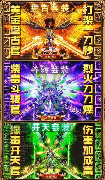 2、新增加特色、自动捡取、自动回收、Rmb回收装备、超炫时装、N多3D超彩地图!