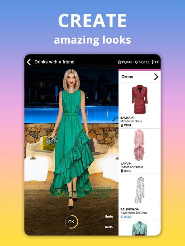 3、有精美的换装服饰,在全屏幕方位内都可以发现不同的造型,满足玩家的换装愿望。