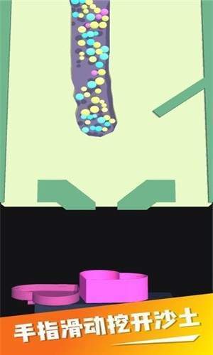 画线挖掘闯关的休闲手游,游戏中玩家的任务就是滑动屏幕来挖掘出一条线路让众多的小球沿着线路滚动全部装入盒子中,注意线路的选择,我们还可以通过玩游戏来赚取金币,兑换红包奖励。