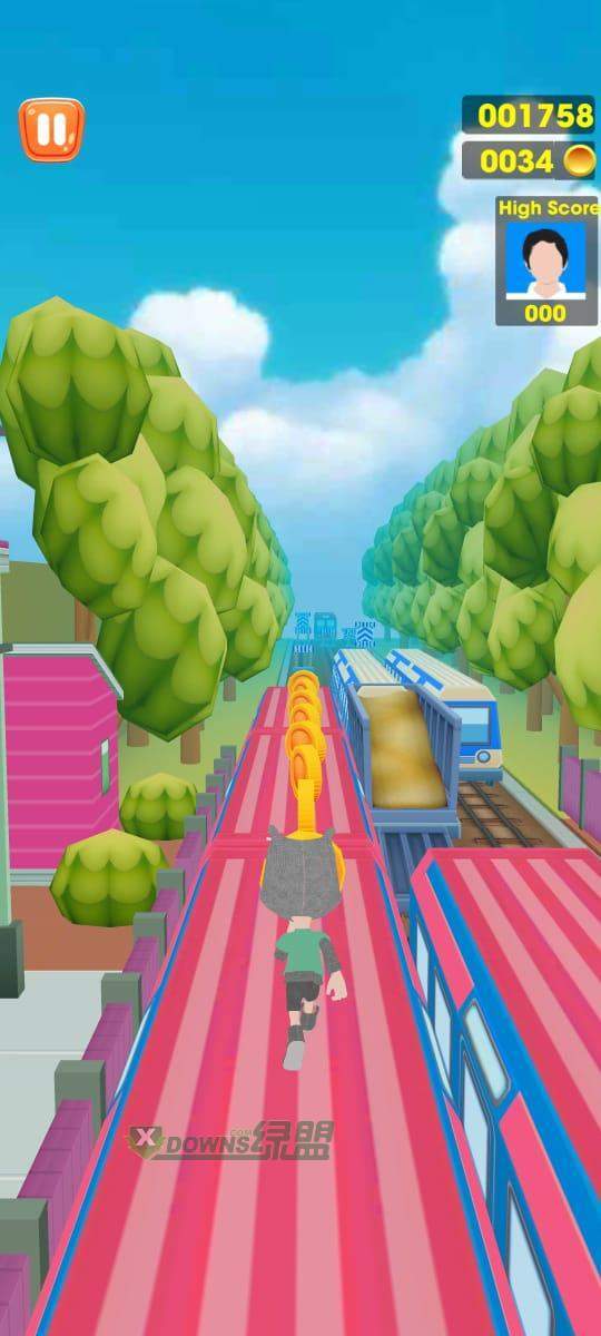 游戏整体的玩法类似地铁跑酷,需要在复杂的车厢和街头跳跃奔跑,收集金币,并解锁更多的炫酷皮肤。