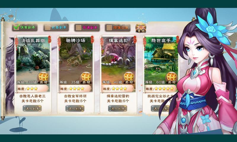 1、开启你浪迹天涯的人生挑战,通过招募门客的方式来培养更多的侠客;
