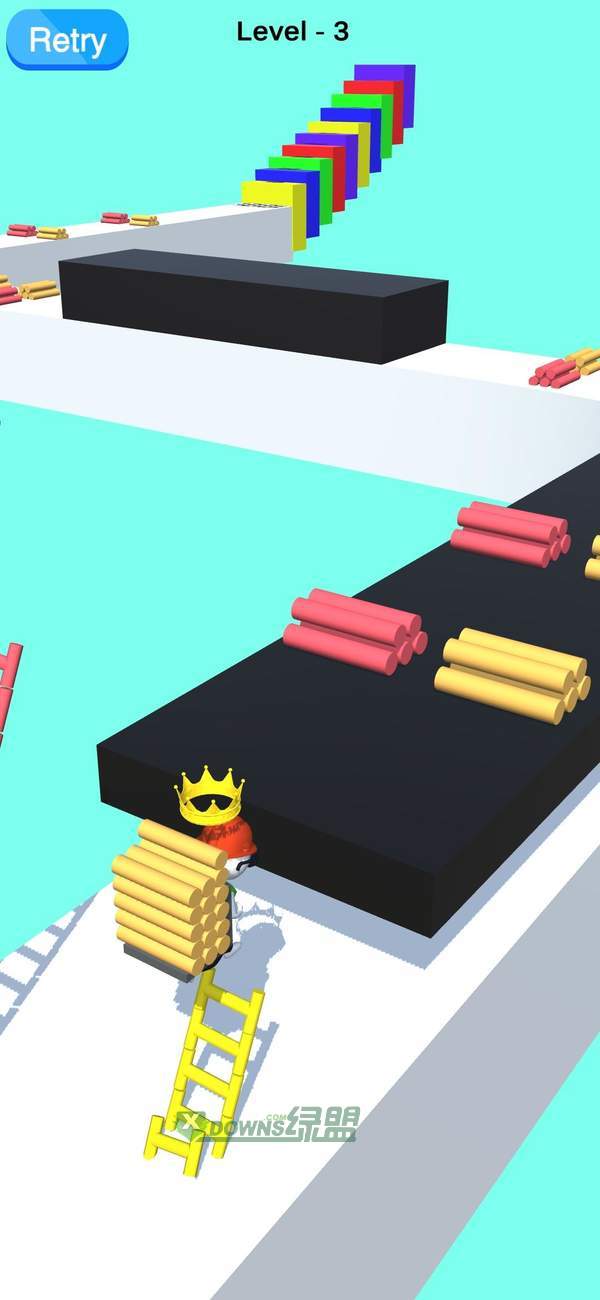 1、建造一个梯子来赢得比赛。收集金币然后将手指放在屏幕上构建梯子