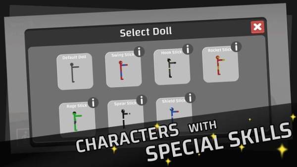 2、使用交通工具,道具和工具包卸下火柴人,并获得尽可能多的分数;