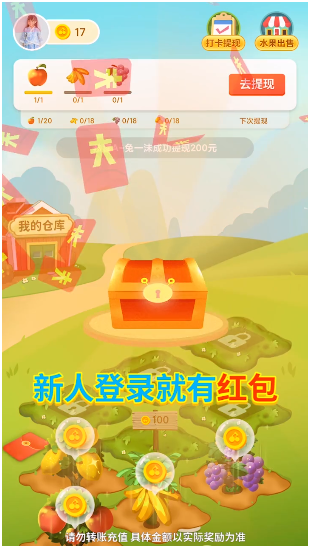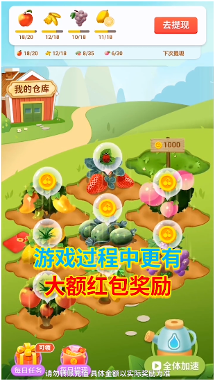 一款新的果树种植然后领水果、领红包的休闲模拟游戏。