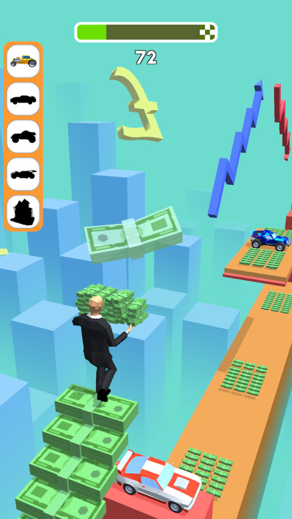 疯狂运钞游戏是一款奇妙的休闲跑酷闯关游戏。化身成为一名专业的股票经纪人,在赛道上收集更多的钞票,在进入到终点的时候获得的掌声才会更加大声。操作十分简单,但是非常考验玩家的敏捷反应能力,更多精彩内容赶紧加入体验吧!