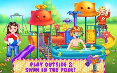 这是一个满屋子!大量的护理活动在等您,探索您宝宝的梦想之家!给您的宝宝打扮,给她一个温暖的泡泡浴,甚至去游泳池游泳!装饰厨房,客厅,浴室!给每个房间做一个梦幻的改头换面,使其与众不同!