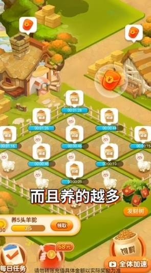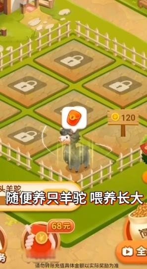 一款轻松养羊驼的互动游戏,不断的扩大自己的农场获得红包。