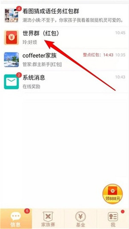 2、建议直接到世界群里面领取红包,或其它群也行。