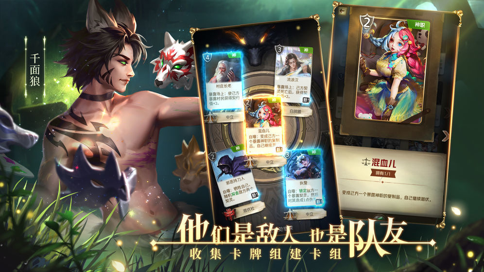 我们为《狼人对决安卓版》设计了上百张卡牌,不同类型的角色可同时存在于你的卡组之中,仔细研究你所拥有的每一张卡牌,构筑属于你的最强牌组,赢得最终的胜利!