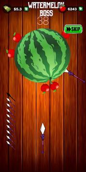 水果矛是一款轻松有趣的休闲竞技游戏,瞄准目标水果,点击屏幕以发射矛并击中水果。击中的次数越多,得分就越高,成为获奖者的机会就越高。每5-10个阶段击败老板,以获得更多奖励!
