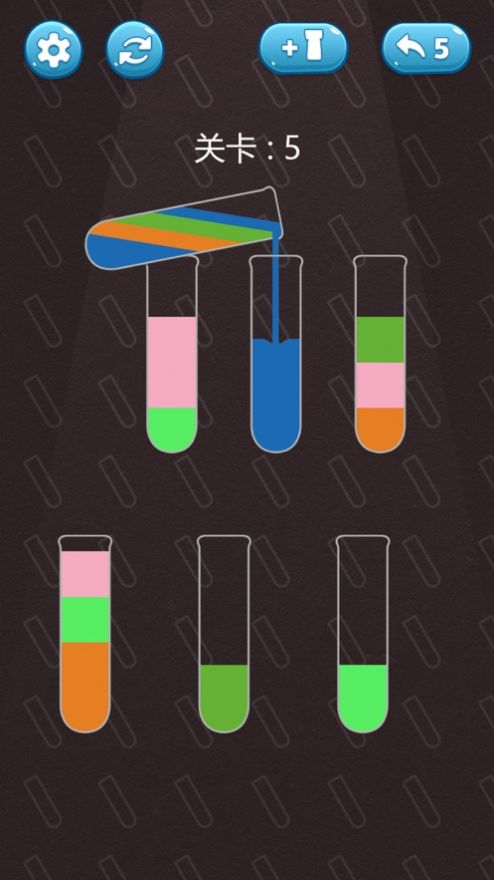 1、轻击水瓶即可开始游戏,只有相同颜色且有足够空间才能开始倒沙;