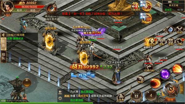 3、击战忘忧传奇手游中加入了超级多的玩法,自由的对战模式,不受限制,炫酷的特技,满屏的追击。