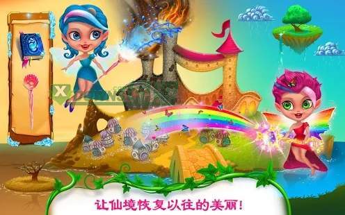 不好了!邪恶女巫在仙境上施了魔法!现在这片土地又干燥又悲伤。仙女们来抢救!帮助仙女发挥其魔力来拯救仙境!释放咒语,照顾附魔的生物,并将土地从邪恶的诅咒中解放出来!