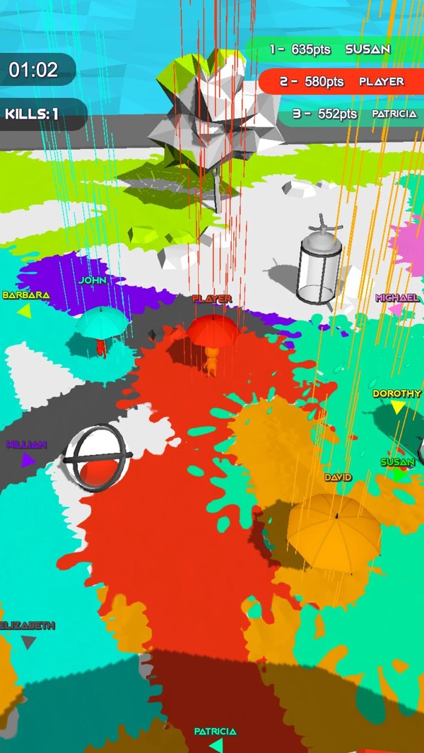 染色雨伞大乱斗是一款画面非常漂亮的休闲益智游戏。在这个游戏里,玩家要通过上色来占据自己的地盘,颜色面积越大,实力就越强,为了赢得最大的胜利,球员应该努力移动,在移动过程中尽可能多地占据土地,感兴趣的朋友快来下载玩耍吧。