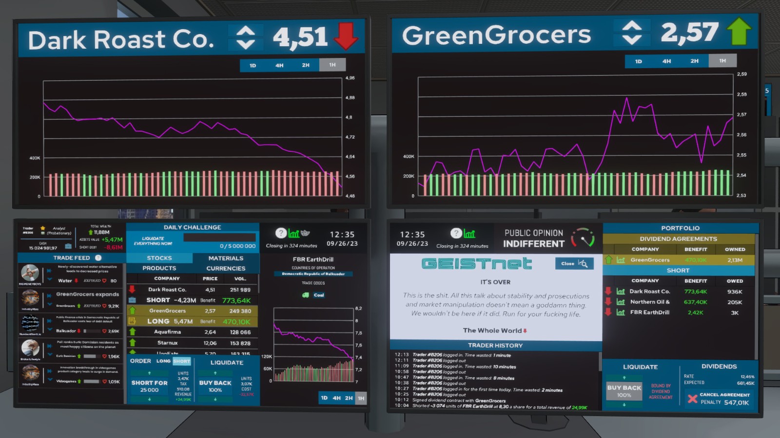 2、玩家的目标是要为公司FERIOS赚钱,透过买进上涨中的股票,并趁下跌前卖出;