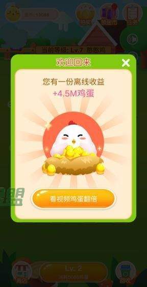 3、当然玩家也可以购买鸡饲料,离线的是时候也会有金币的收益。
