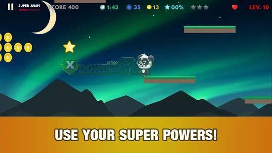 查找并使用您的超级能力:超级跳跃,超级奔跑,低重力和无敌。