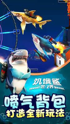 升级你的鲨鱼装上超酷的装备,咬合更用力、游的更迅猛变得更贪婪!每只蓄势待发的鲨鱼都需要、耳机、雨伞还有超炫的喷射背包!