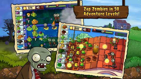 多达50个的冒险模式关卡设定,从白天到夜晚,从天台到游泳池,场景变化多样