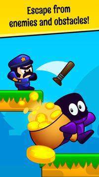 帮助Rob偷走收藏品中的所有物品,并成为该市最大的小偷!为此,您将必须跳上平台并避开途中发现的所有障碍物和敌方角色。游戏在不同的环境中进行,例如大学,城市,音乐会或游乐园。躲开它们以获取集合中的所有物品!