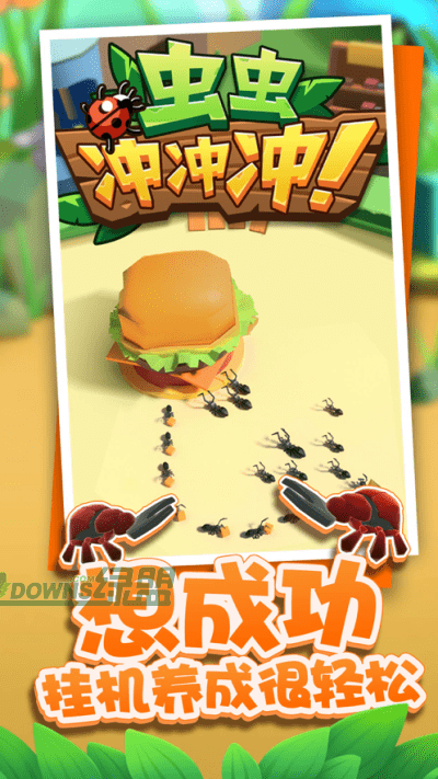 虫虫冲冲冲游戏下载是一款非常有趣的游戏,在虫虫冲冲冲游戏下载中海量的虫虫种类,玩家需要带领虫虫守护自己的领地,不要被他人争夺了。不同的虫虫种类,有着不一样的钳子属性哦!感兴趣的伙伴们,赶紧前来下载玩耍吧!蚂蚁大战开始。