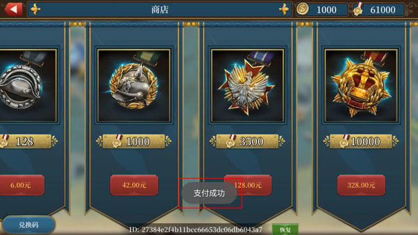 选择你要购买的物品,点击购买,进入内购界面,点击返回即可购买成功