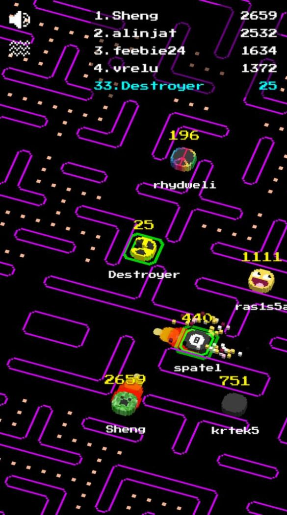 吃豆英雄人游戏是一款趣味多人在线竞技小游戏。全新的吃豆人玩法,采用俯视视角,玩家们将会在迷宫竞技场内展开一场疯狂的对决。我们不仅要收集豆豆扩大提醒取得优势,还需要想尽办法去淘汰其他玩家,简单欢乐的竞技小游戏,你值得拥有。