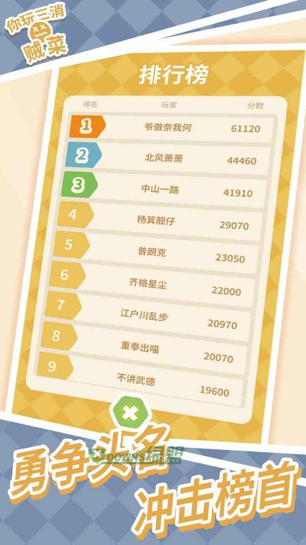 1、游戏内部设置了排行榜,玩家可以不断闯关来挑战自己的极限,登上榜首;