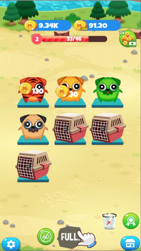 1、经典的合成玩法,只需要合并就能够解锁高级品种狗狗