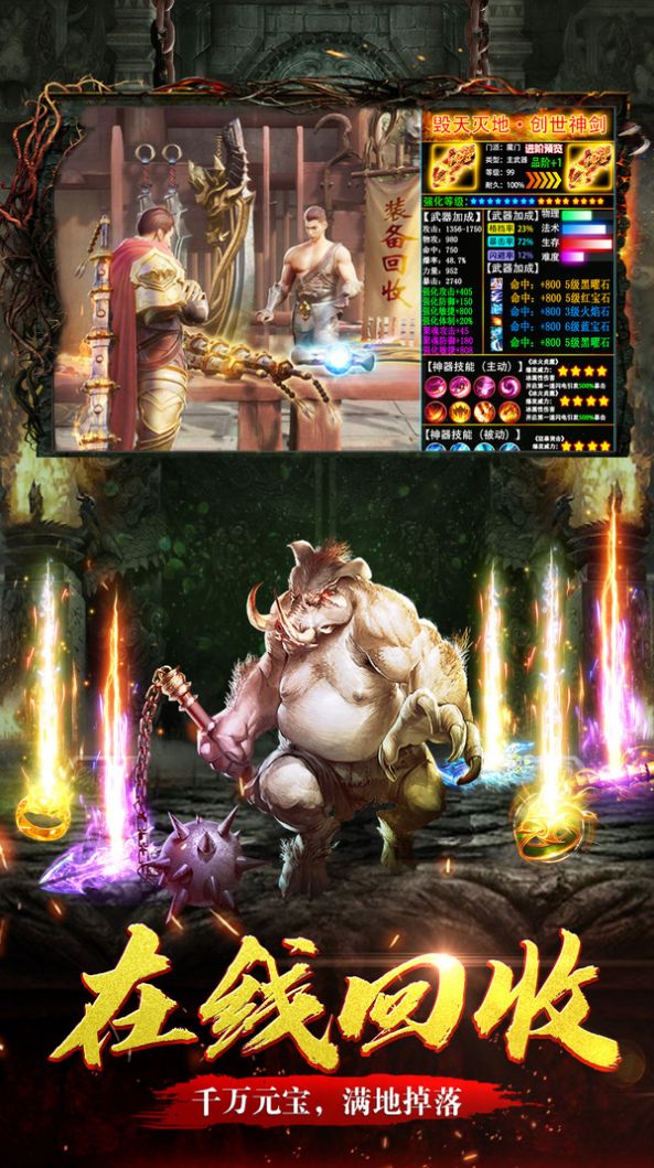 3、800%爆率,小怪爆光柱,10转神器靠打,10分钟100级,boss无限刷。