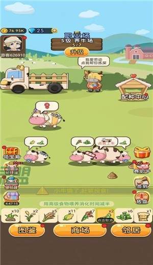 游戏玩家可自由升级自己的农场等级哦,解锁更多不同品种的奶牛来提高自己的产奶速度。