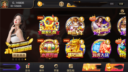 支持使用第三方平台一键快速登录,新用户首充还有返利活动可以参加,玩家推广好友还能获得佣金奖励,这里包含了皇家礼炮、抢庄牛牛、炸金花、神龙宝藏、龙虎大战等多种热门游戏,全天客服为你在线守候,随时随喊随到。这里的活动多多奖励多多,玩家上线就能免费选择试玩,感兴趣的朋友们快来下载吧。