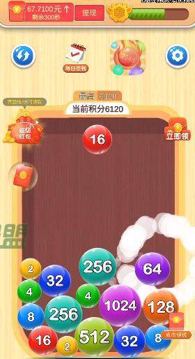 把数字球撞击在一起会变大合成2048,不仅好玩,还奖励红包;