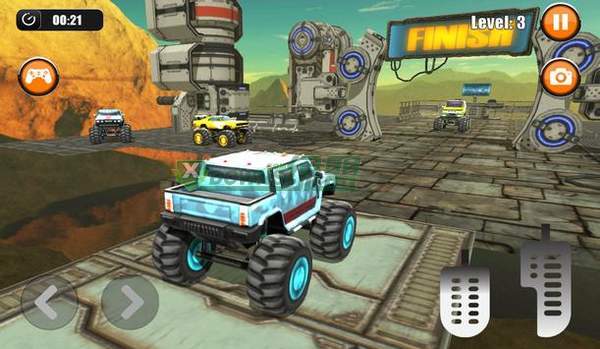 终极3D怪物赛车是一款怪物赛车游戏,丰富的关卡配上酷炫的搞怪特效,十分有趣,操作和技巧并存,玩家可以自由选择喜爱的颜色的卡车,在各类极限跑道上体验驾驶的快感。