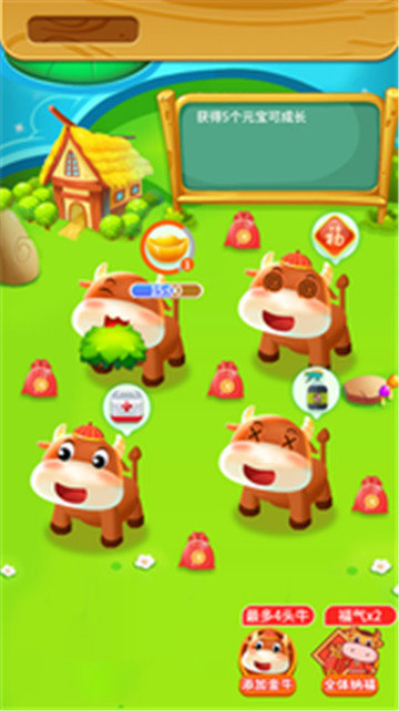 一款全新推出的养牛休闲游戏,轻松合成获得更多的福气值。