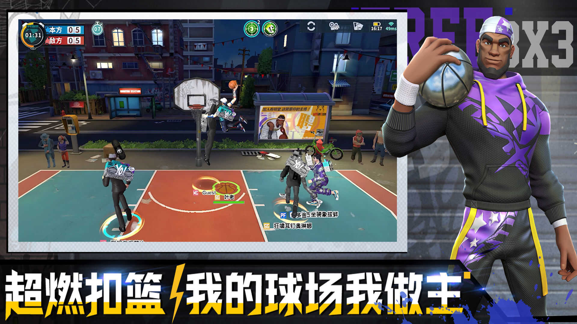 极速匹配,快速开局!重温3V3 经典对决,呈现原汁原味的街球体验,享受默契的共鸣,追求绝杀的快感!