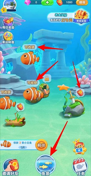 欢乐水族箱并不是合成类型的,点下面的『鱼苗』买入小鱼,等一定的时间长大后就可以收获。收获的时候一定要用超级多倍领取,不然红包劵奖励会很少。左下有个任务提示,按要求养相应的鱼种,完成后有钻石奖励,暂时没测试有什么用。有些人看视频奖励比较高,一天应该也能拿几块,试玩了一下拿了两个3毛红包,都是秒到的。