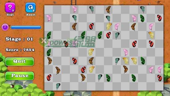 您的任务是找到两对蝴蝶,并在时间到之前将所有瓷砖从田野中移除。但是,两个图块之间的路径不能超过三条线或两个90度角。有策略地进行游戏,因为如果没有可能左移链接两个图块,则棋盘将重新排列。如果没有剩余的随机播放时间或时间用完了,那么游戏就结束了!