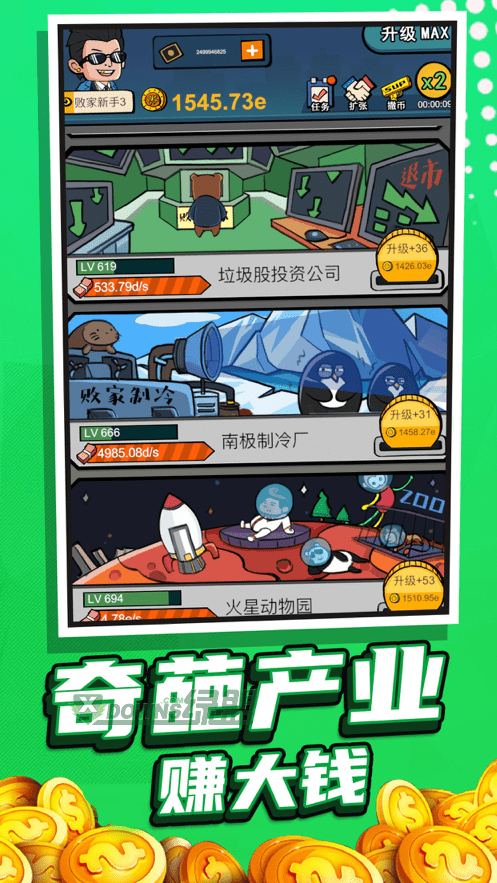 赚他十个亿红包版中你将作为一名投资达人来投资各项具有发展潜力的产业,展现自己强大的商业天赋头脑和敏锐的眼光,通过不断的努力完成资金的积累,实现财务自由。