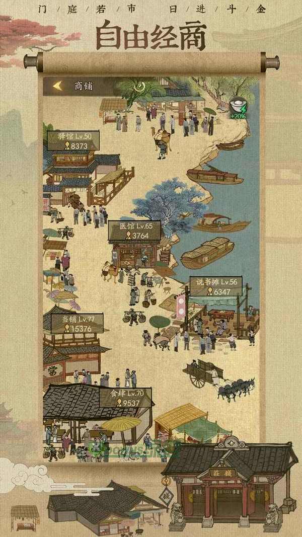 商铺赚钱:府邸排名越高,商铺赚钱加成越高。