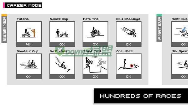 顶级火柴人自行车是一款刺激好玩的冒险游戏,控制角色骑着自行车在各个场景关卡之中冒险,越过一个个的障碍陷阱翻山越岭,体验热血无比的冒险过程,不断的闯关获得奖励升级更换你的装备和自行车,赶快来玩吧!