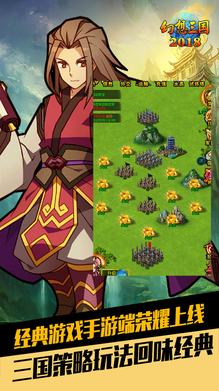 幻想三国是一款以三国为题材的争霸类型的游戏,玩家们将会在这里不断的提升自己的实力,还有很多的强力的三国武将等你去召集,能够带领士兵攻城略地,扩大自己的领地。感兴趣的玩家快来下载体验吧。
