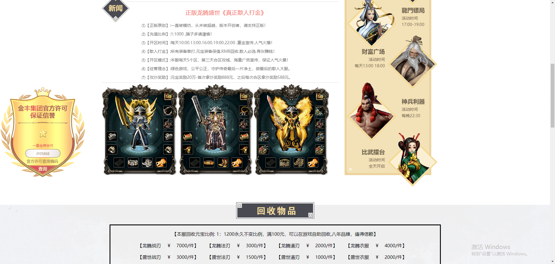 ⑤【开区模式】:本服每天5个区,第三天合区攻城,海量广告宣传,保证人气火暴!