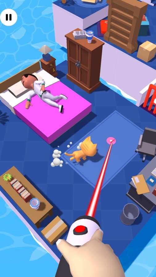 2、游戏中,十分的考验玩家们的反响才能,去试试吧,玩家用激光棒引导猫咪抵达纸箱子中完成关卡。