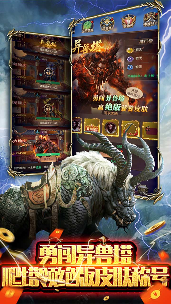 3、丰富的探索挑战玩法,觉醒自己的战斗实力,捕捉神秘异宠和坐骑。