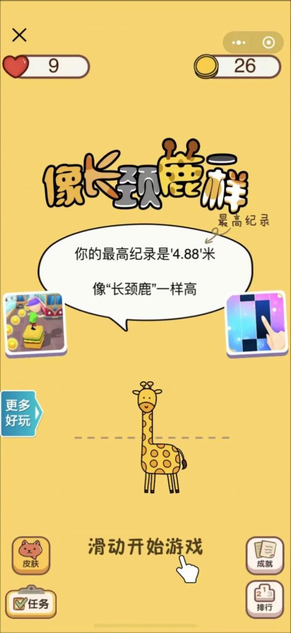 1、长颈鹿的身高可以不断提升,只要你收集到足够的道具,它的脖子就会不断的增长;